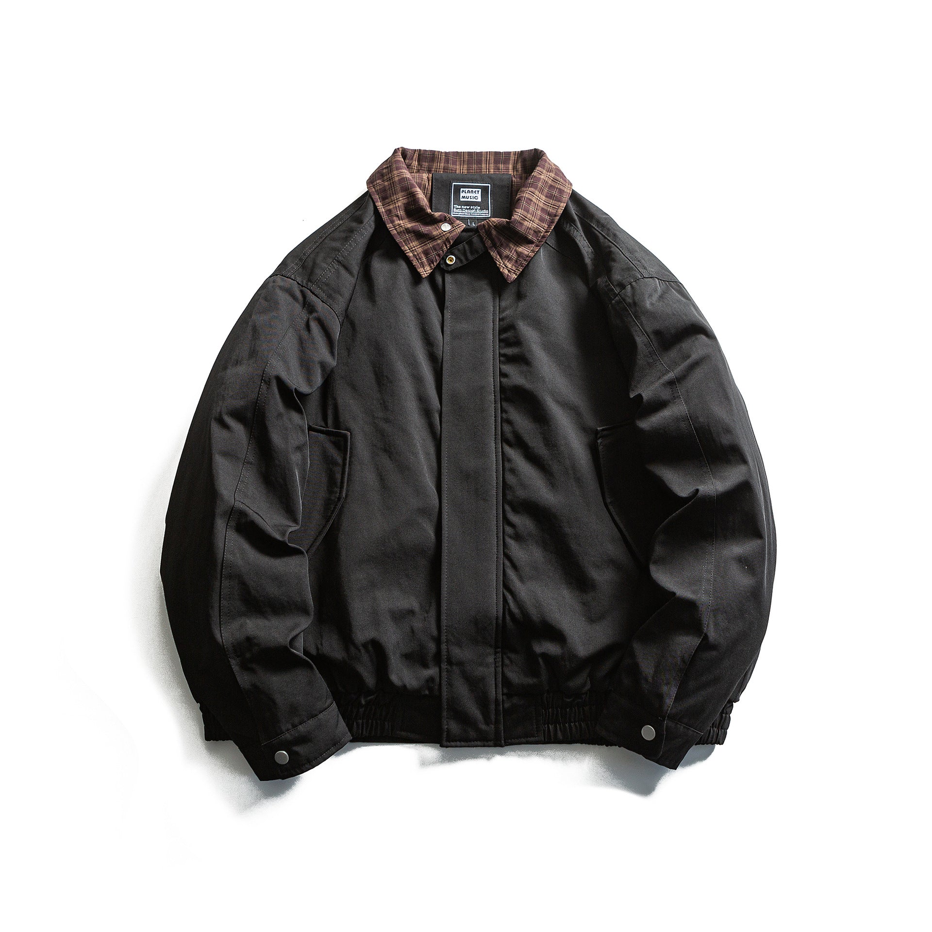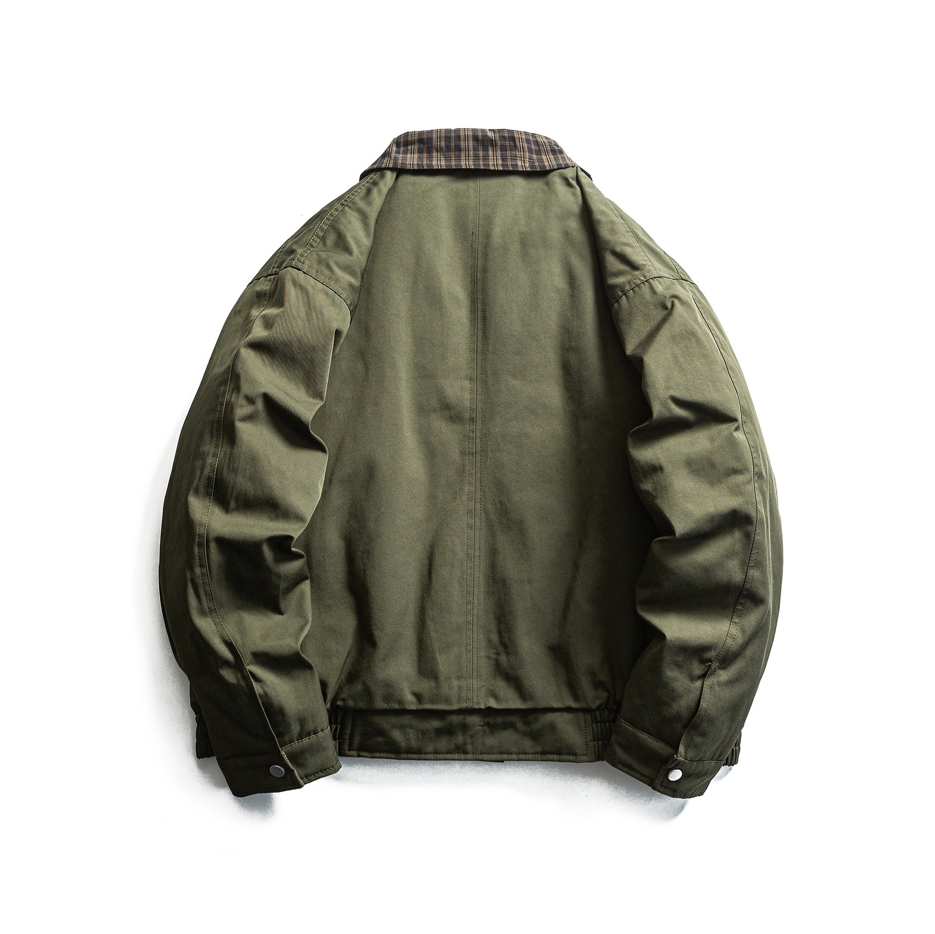 Plaid Patchwork Turn-Down Collar Loose Cotton Coat Men's Workwear Jacket